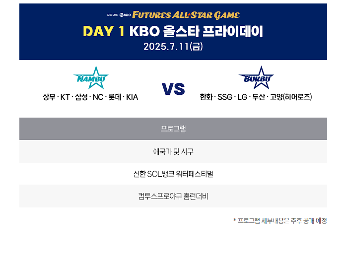 7월 11일에는 올스타 프라이데이로 퓨처스리그팀인 남부와 북부 팀으로 나누어 진행합니다.