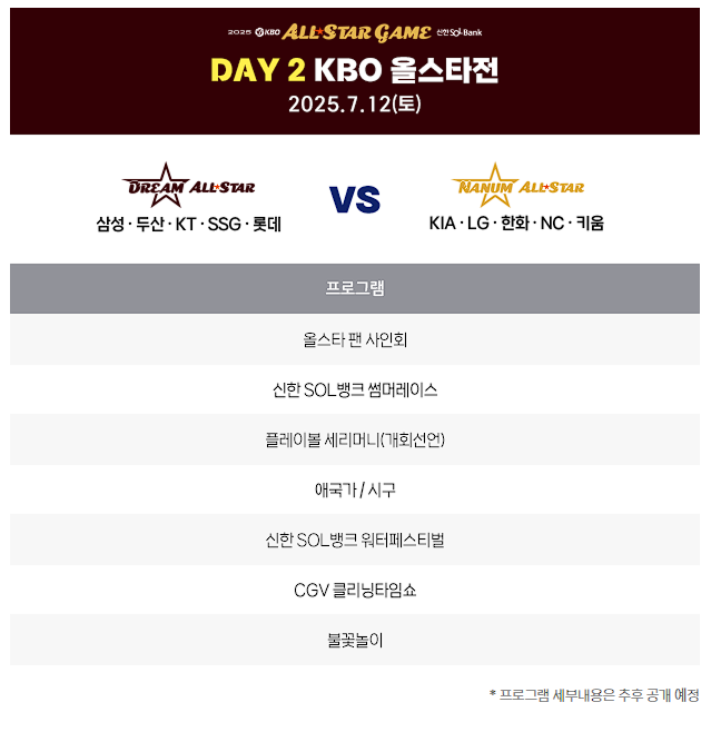 7월 12일날이 전체 10개 구단이 드림팀과 나눔팀으로 나뉘어 경기를 진행하게 됩니다.